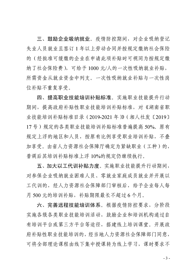 湖南省人力资源和社会保障厅湖南省财政厅关于印发《稳企稳岗稳就业十条措施》的通知