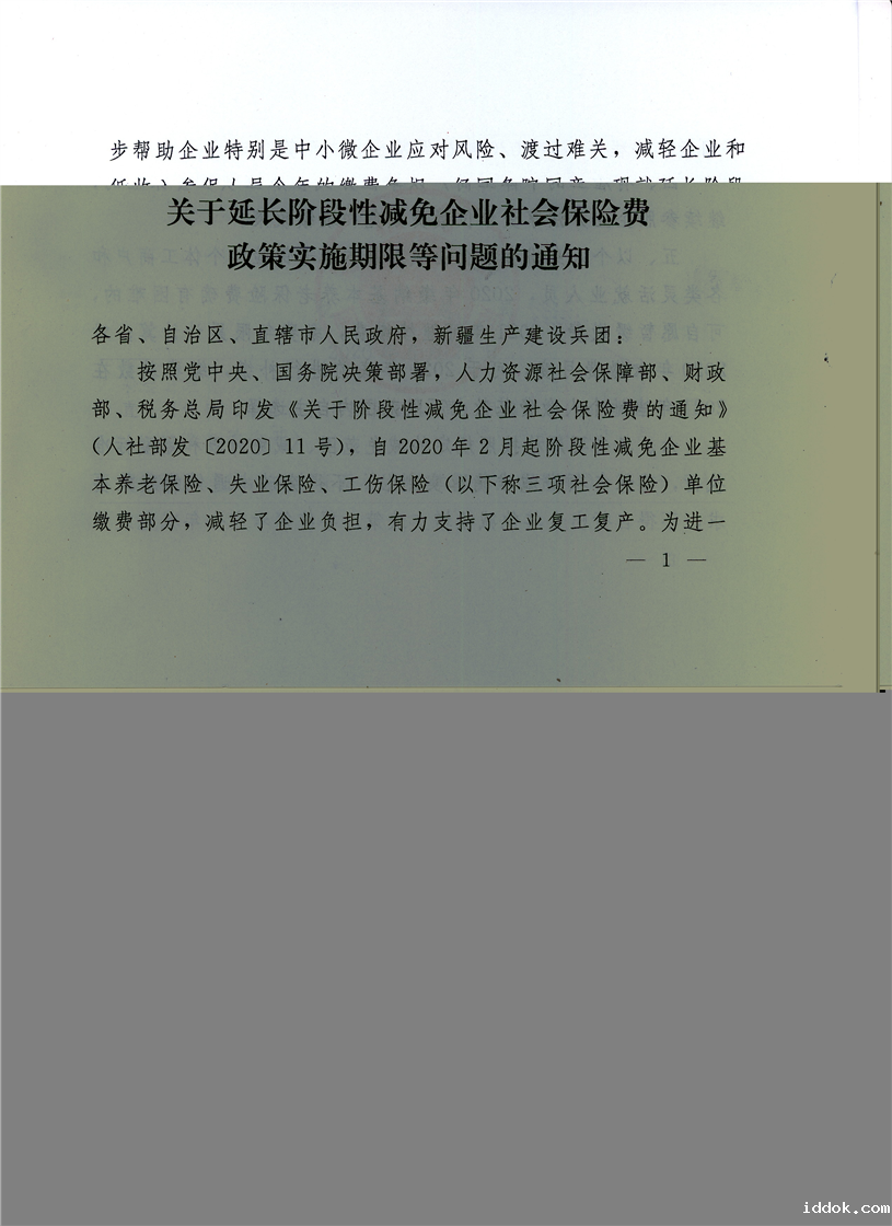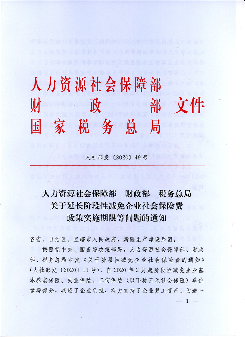 关于延长阶段性减免企业社会保险费政策实施期限等问题的通知