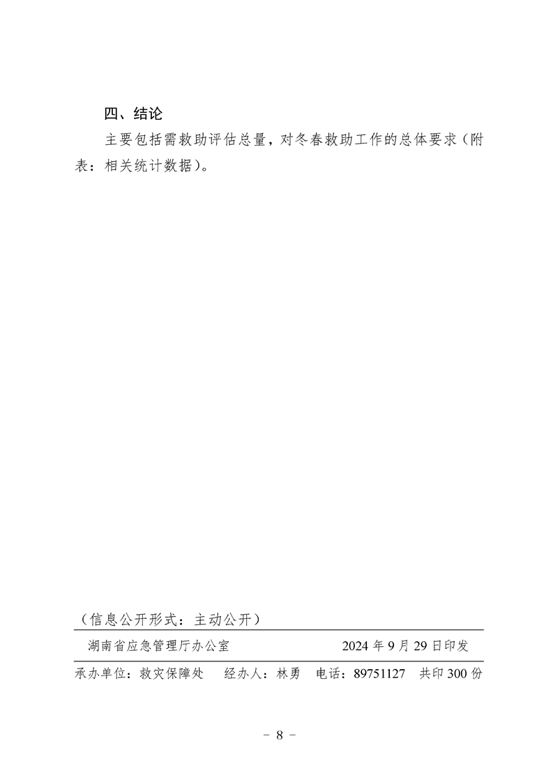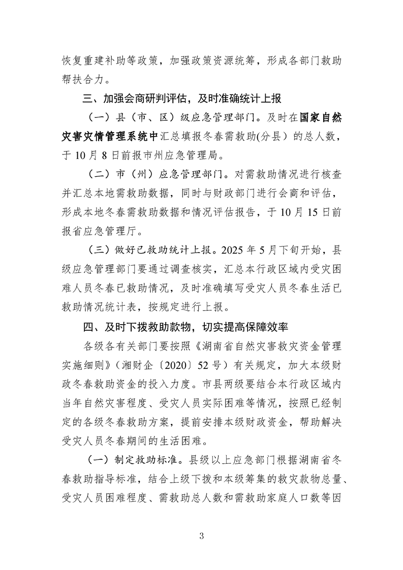 湖南省应急管理厅湖南省财政厅关于组织开展2024-2025年度全省受灾群众冬春救助工作的通知