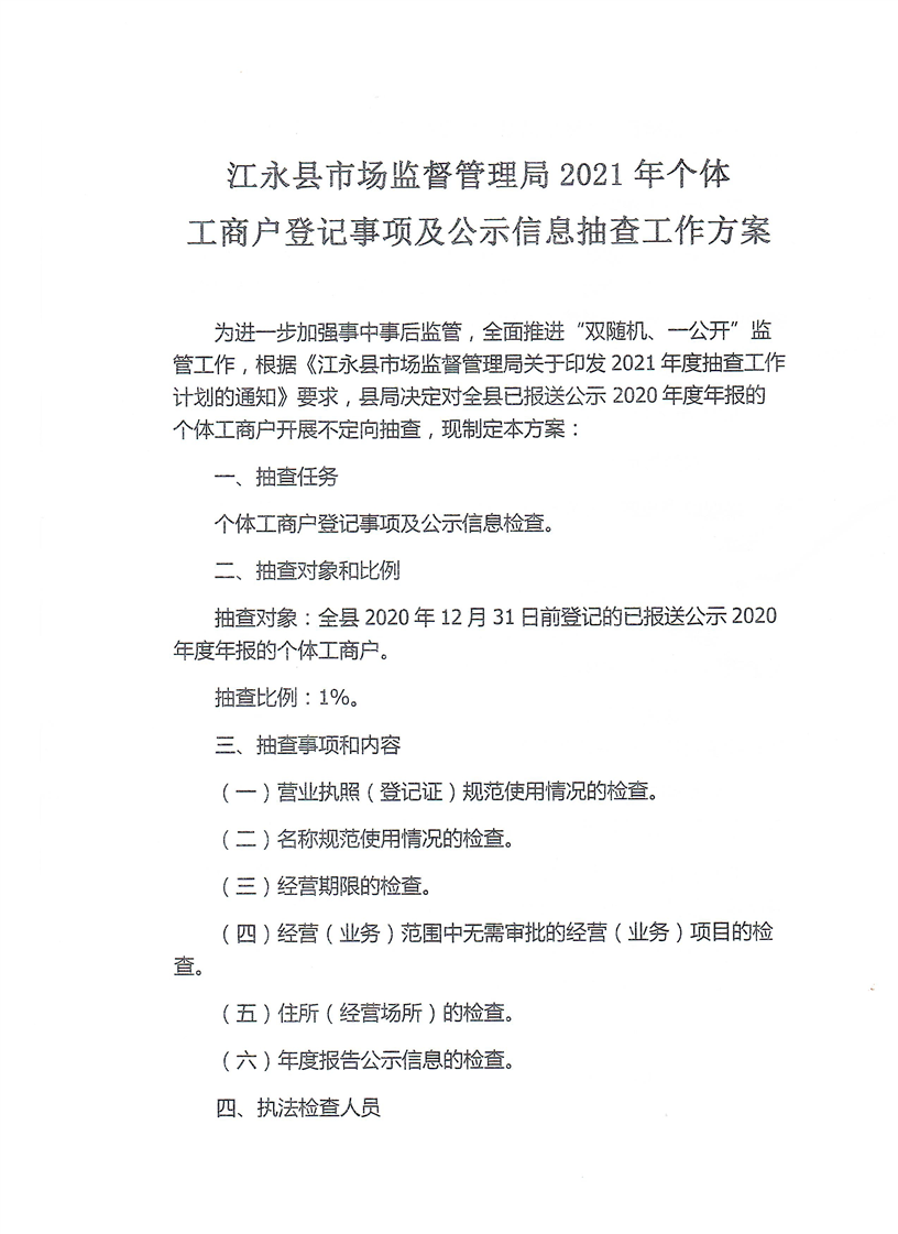优米体育足球市场监督管理局2021年个体工商户登记事项及公示信息抽查工作方案