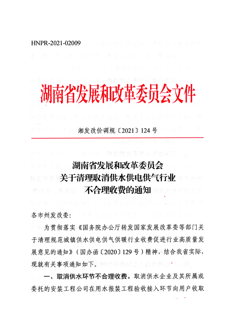 湖南省发展和改革委关于清理取消供水供电供气行业不合理收费的通知