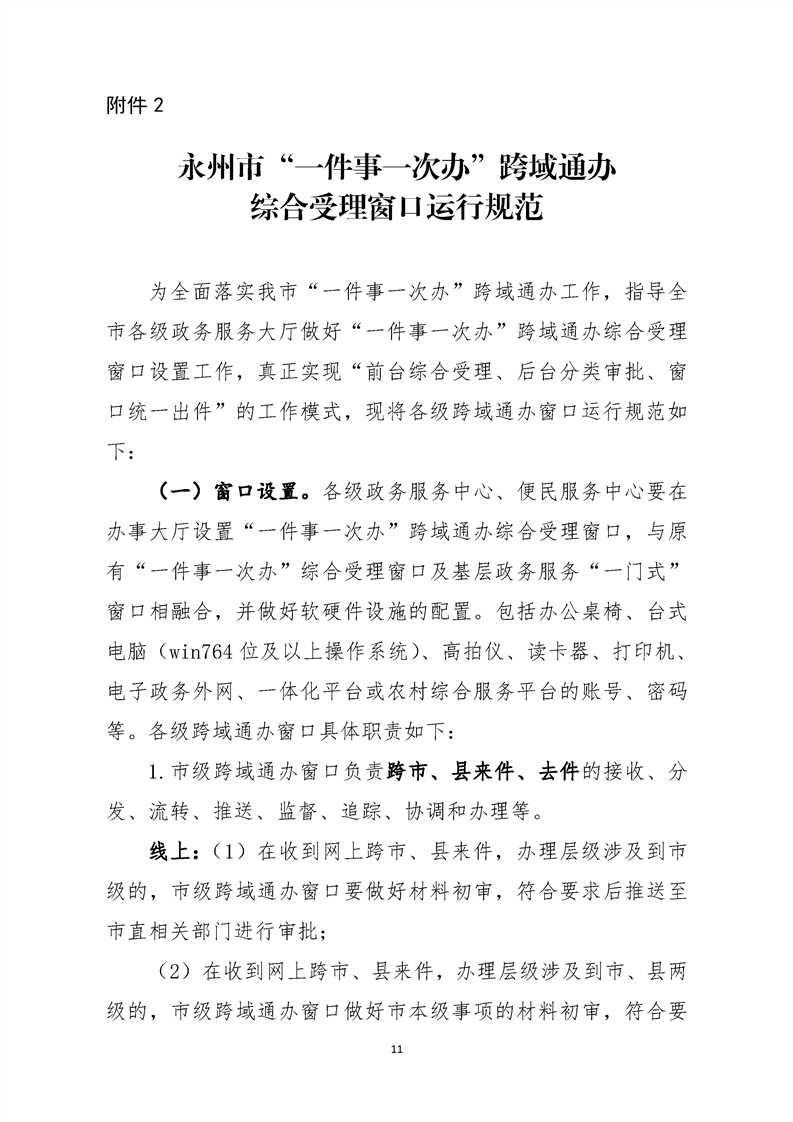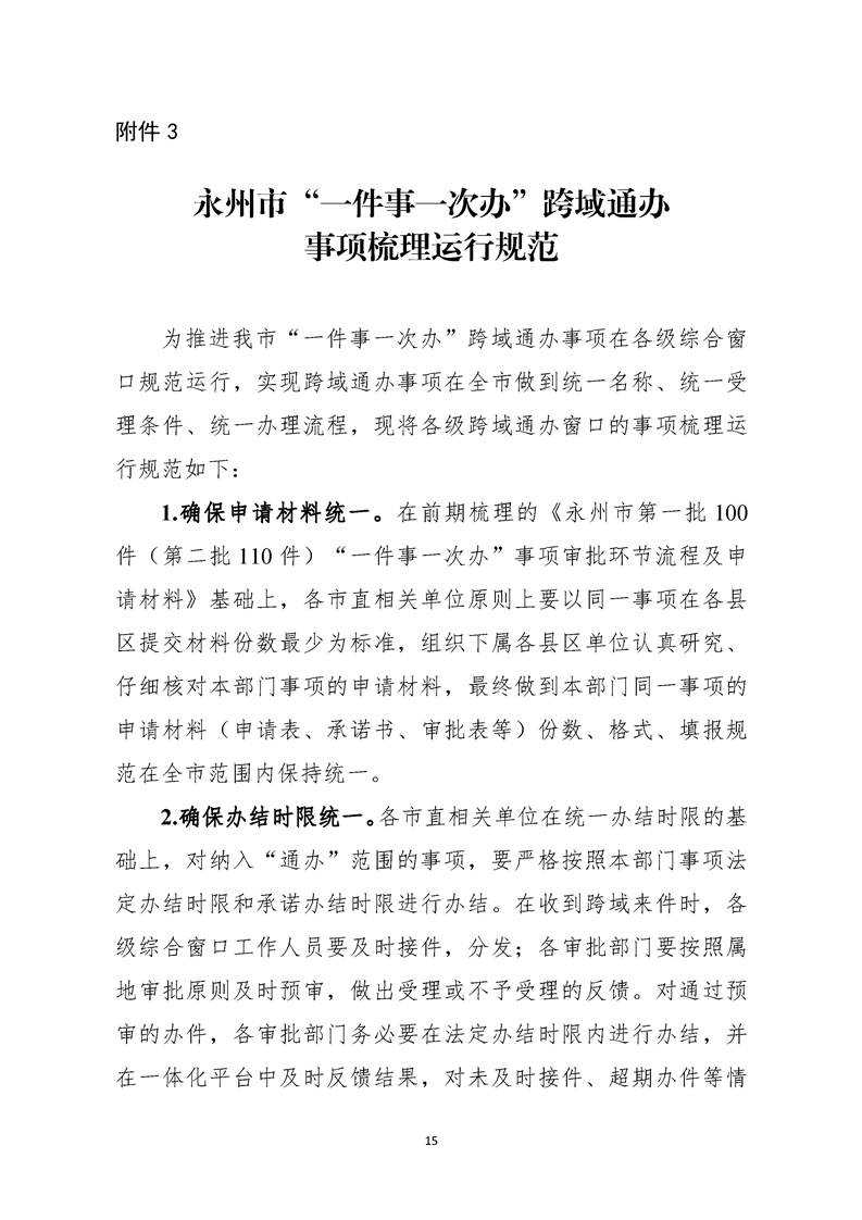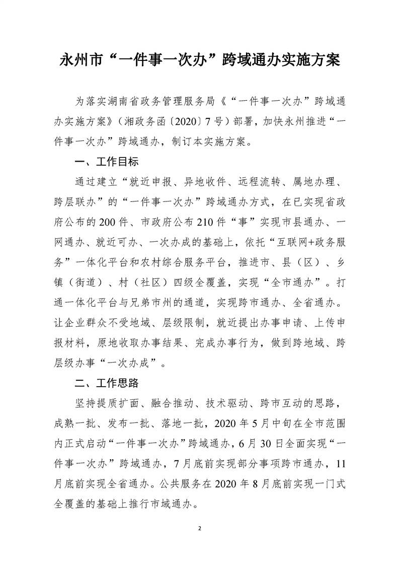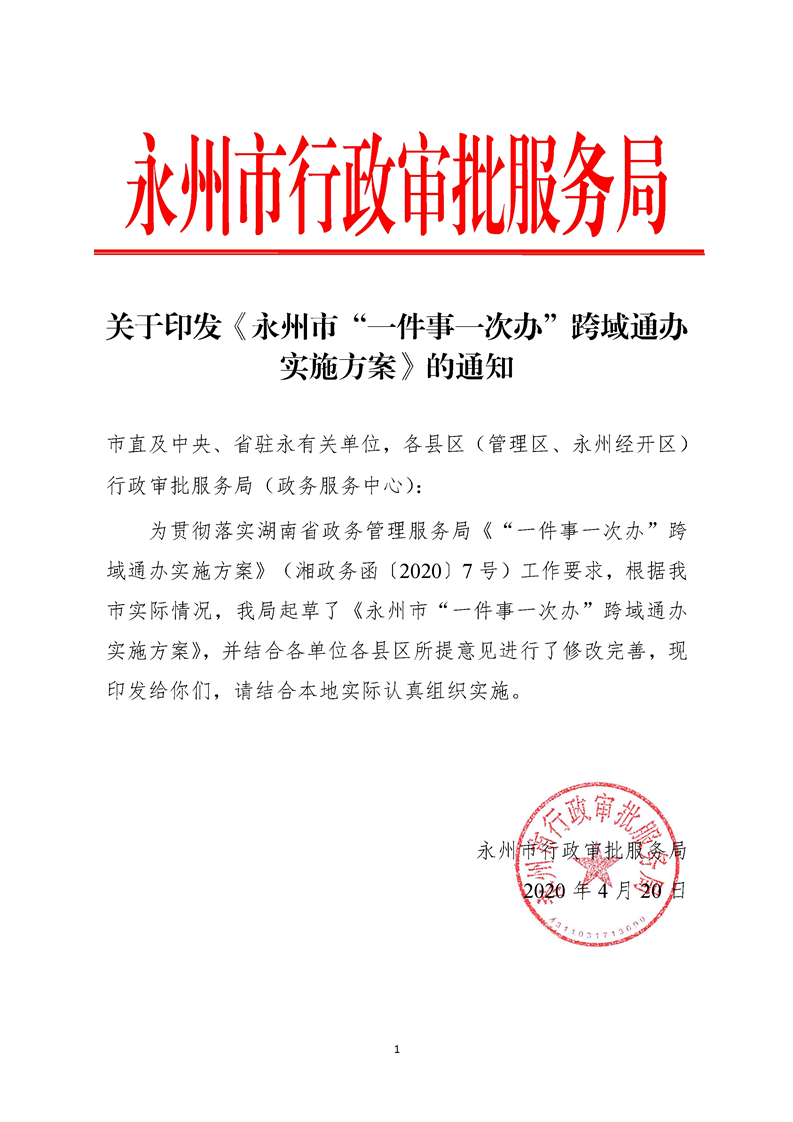 关于印发《永州市“一件事一次办”跨域通办实施方案》的通知