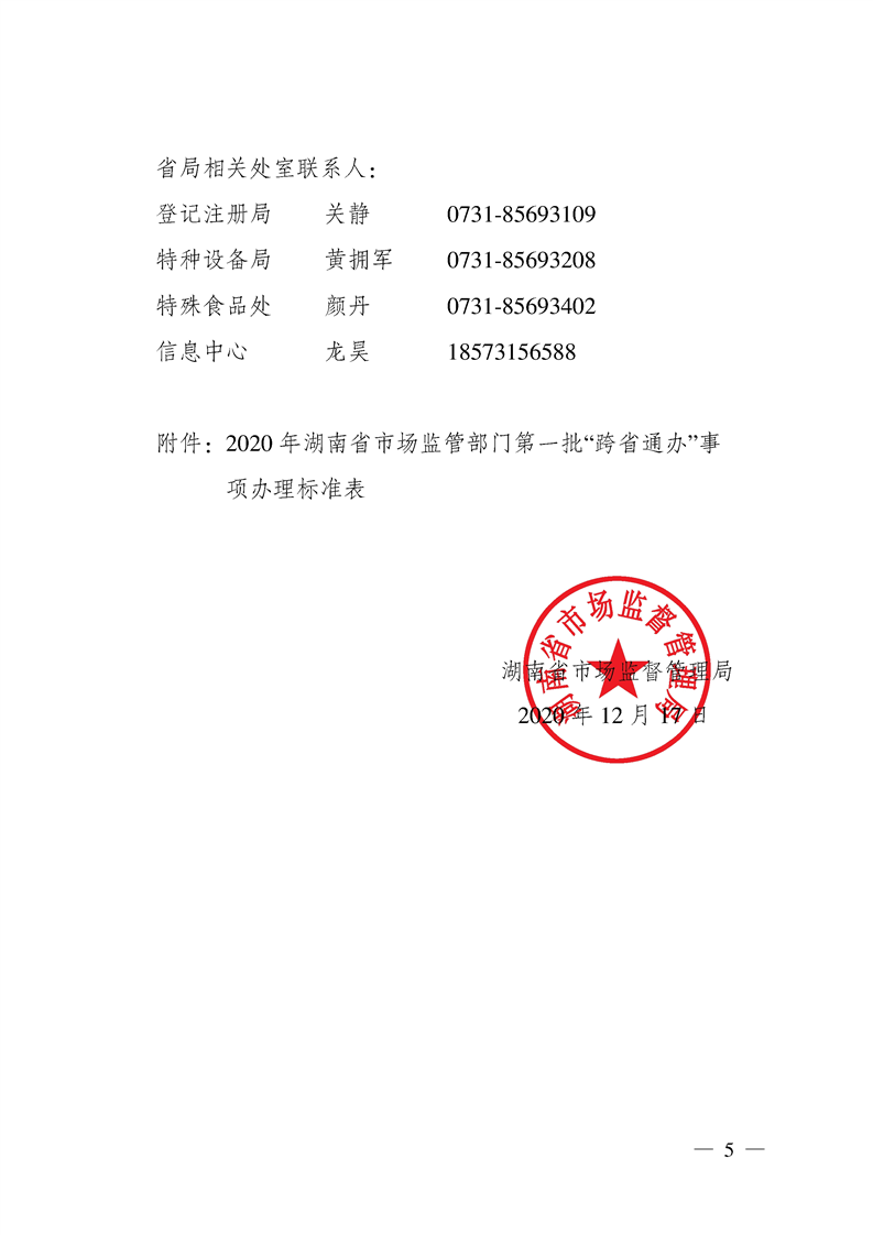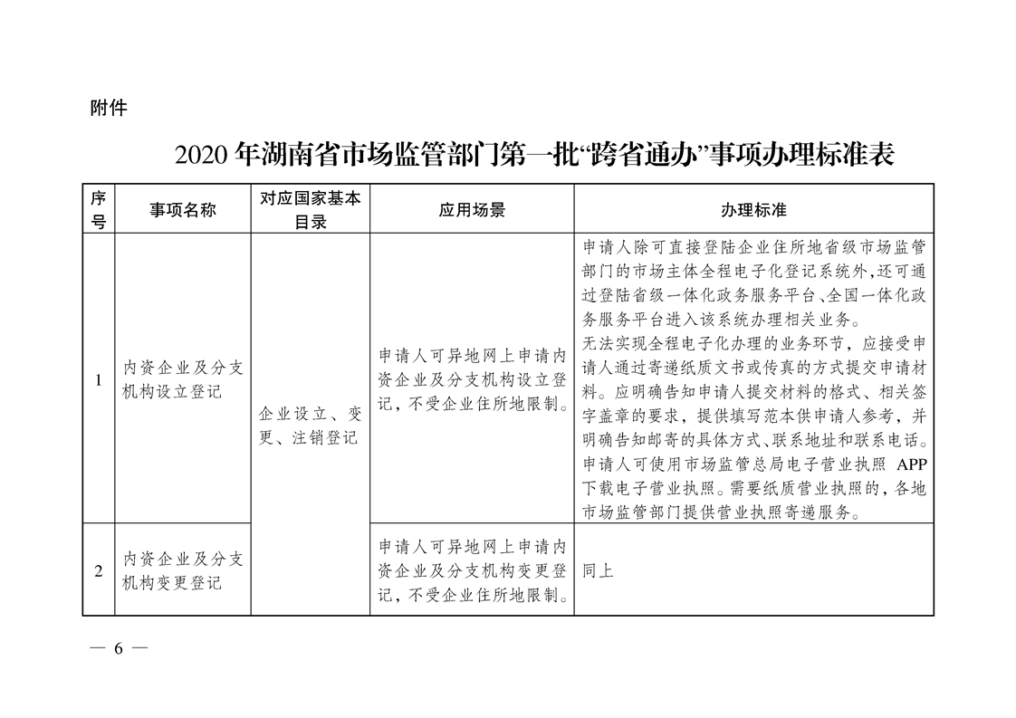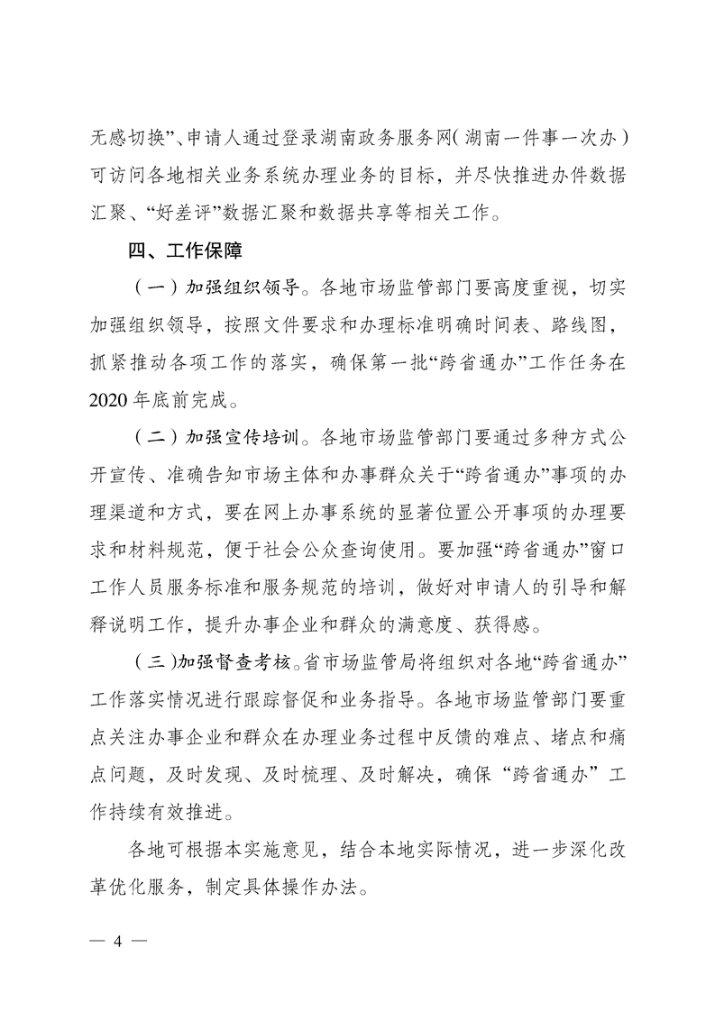 《湖南省市场监督管理局关于推进市场监管部门第一批“跨省通办”事项有关工作的实施意见》