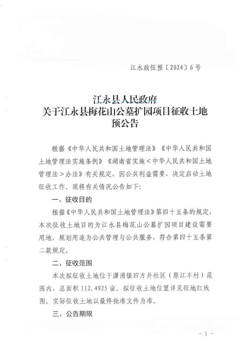 关于优米体育足球梅花山公墓扩园项目征收土地公告