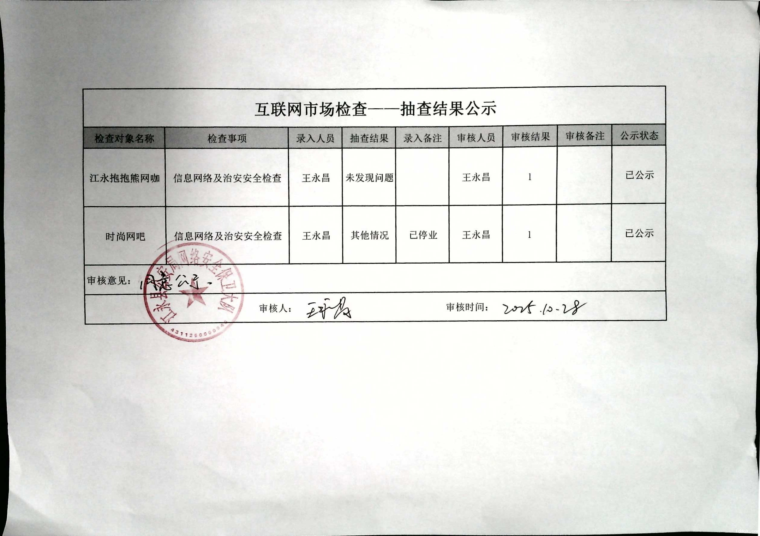 互联网市场检查——抽查结果公示