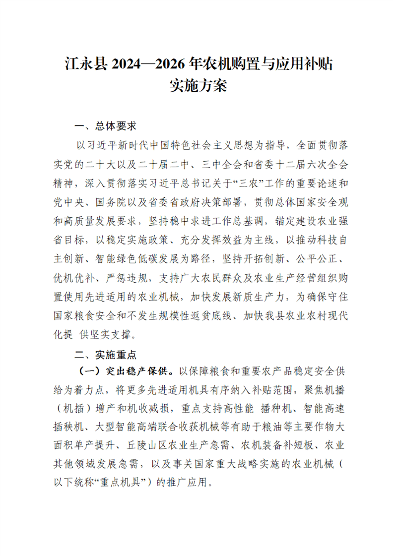 优米体育足球关于印发《湖南省2024—2026年农机购置与应用补贴实施方案》的通知