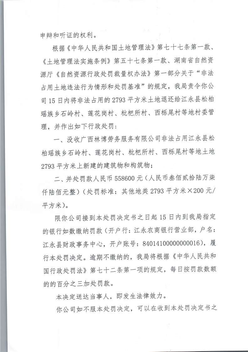 自然资源行政处罚决定书(江永自然资规罚字[2025]2号)
